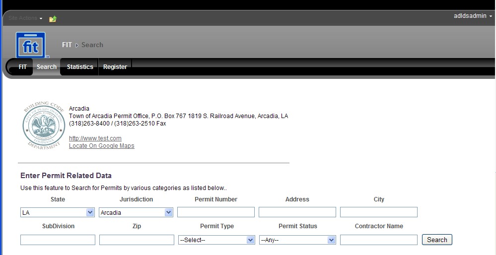 Search is used to search for the Permits by various categories. The Search Page is as follows:
